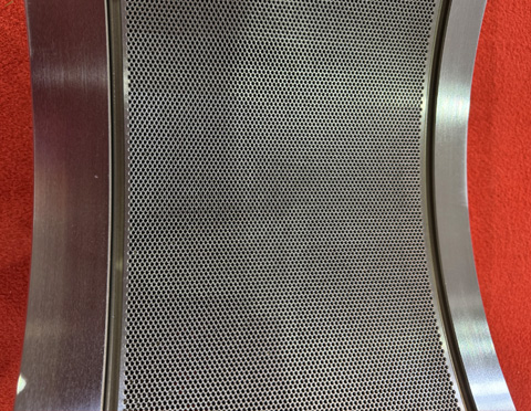 材料選用特約鋼廠冶煉的專用環(huán)模材料46Cr13,含Cr量在13.5%以上,其防腐蝕磨損能力是普通4Cr13的1.5倍以上。機加工后采用槍鉆鉆孔,工效高,生產(chǎn)周期短,光潔度高,出料順暢。熱處理采用真空爐加熱,控制硬度好,且經(jīng)過三次回火,保環(huán)模內(nèi)部組織穩(wěn)定不易變形。
